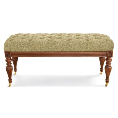 Details About Frontgate Madison Wood Olive Leather Tufted Bench End Of Bed Vanity Chair Stool