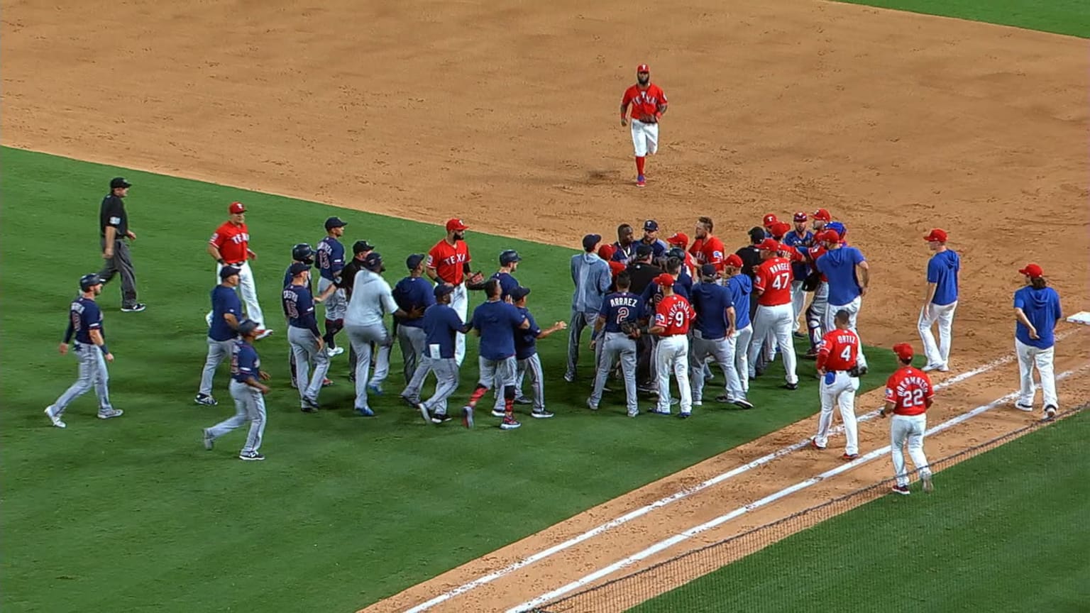 Benches Clear After Rangers Shawn Kelley Twins Marwin