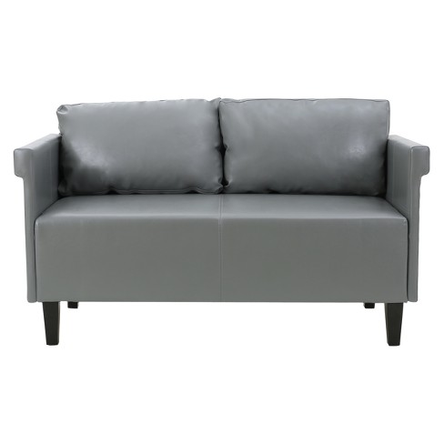 Modern Faux Leather Settee Bench Couch Cushions Gray Living