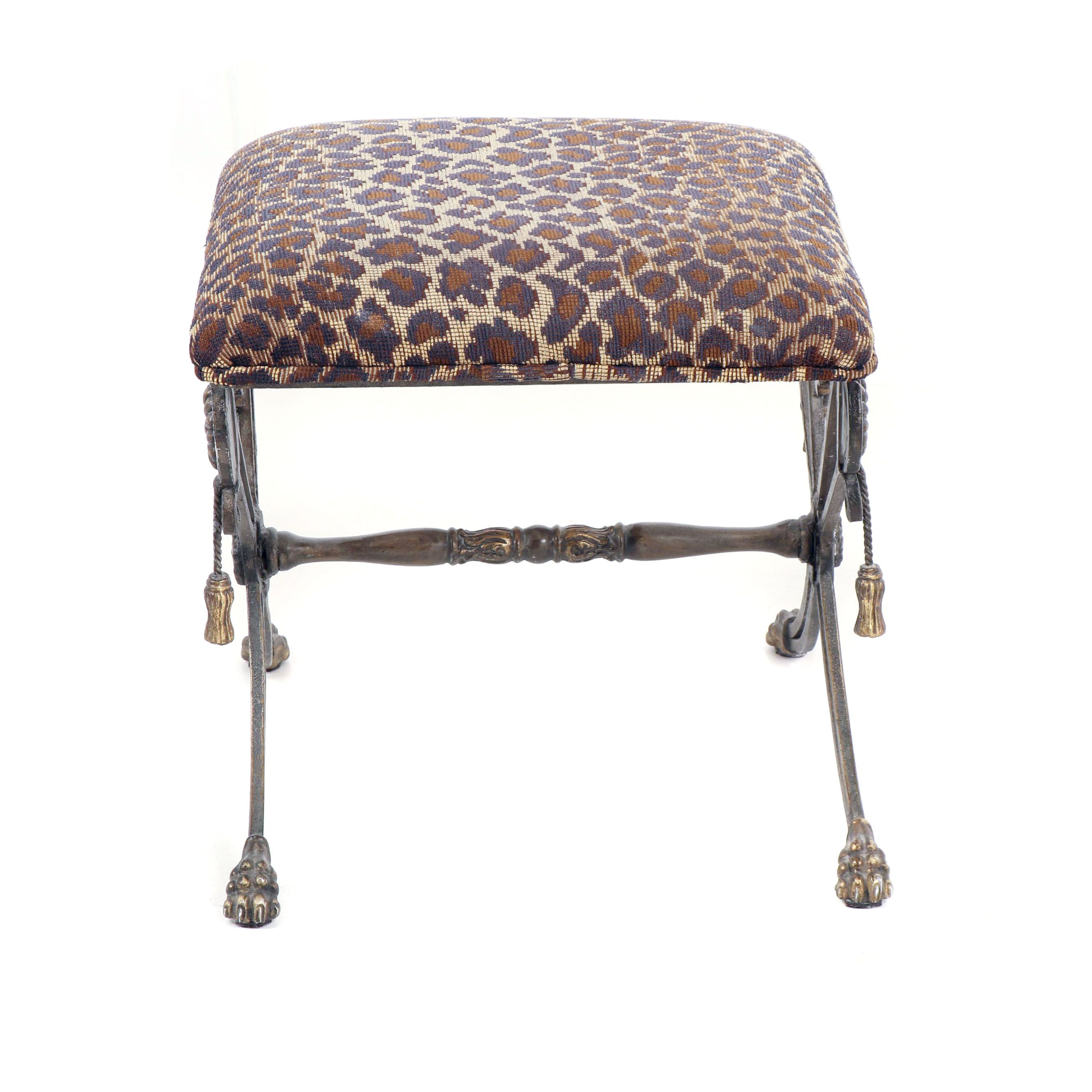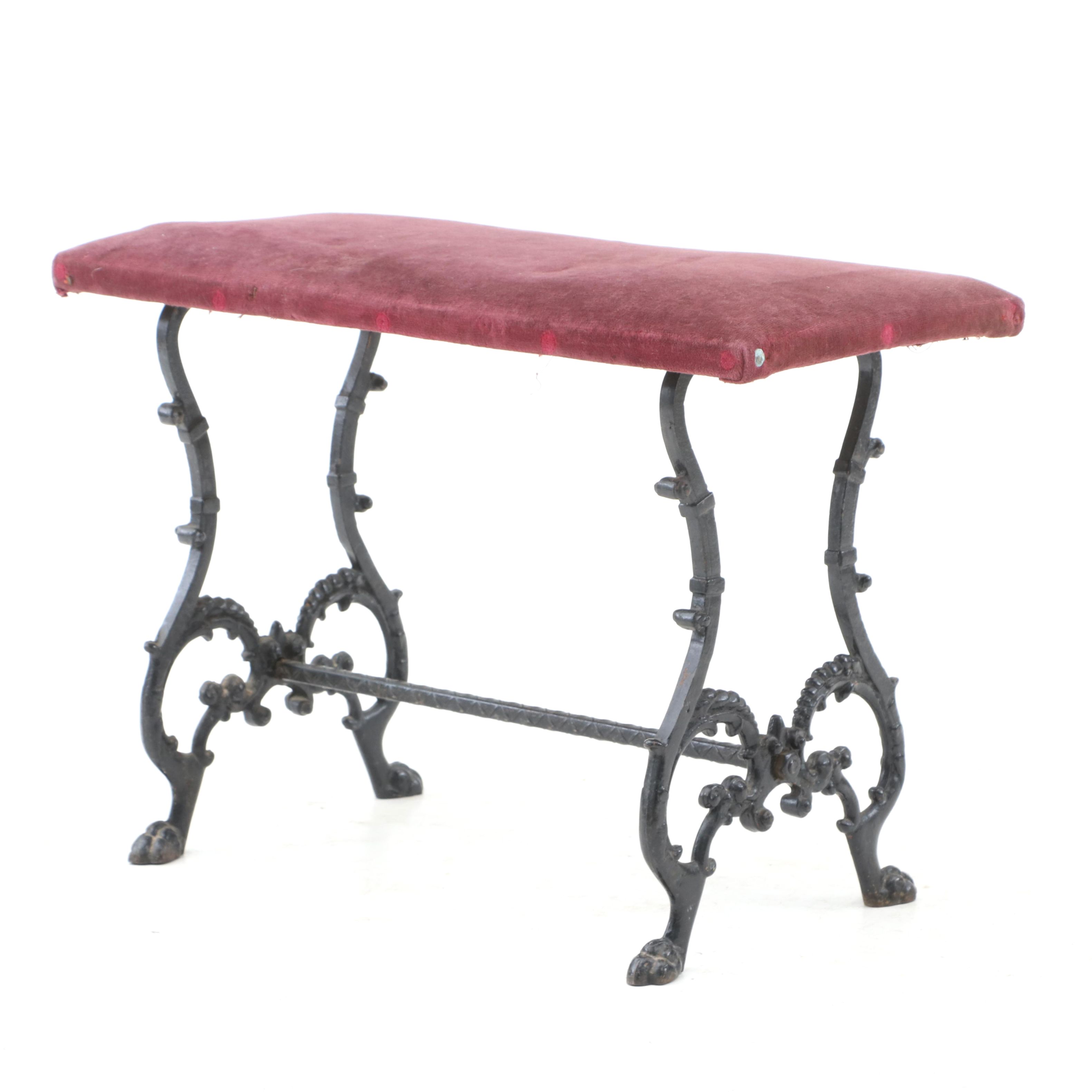 Upholstered Cast Metal Vanity Bench Circa 1920