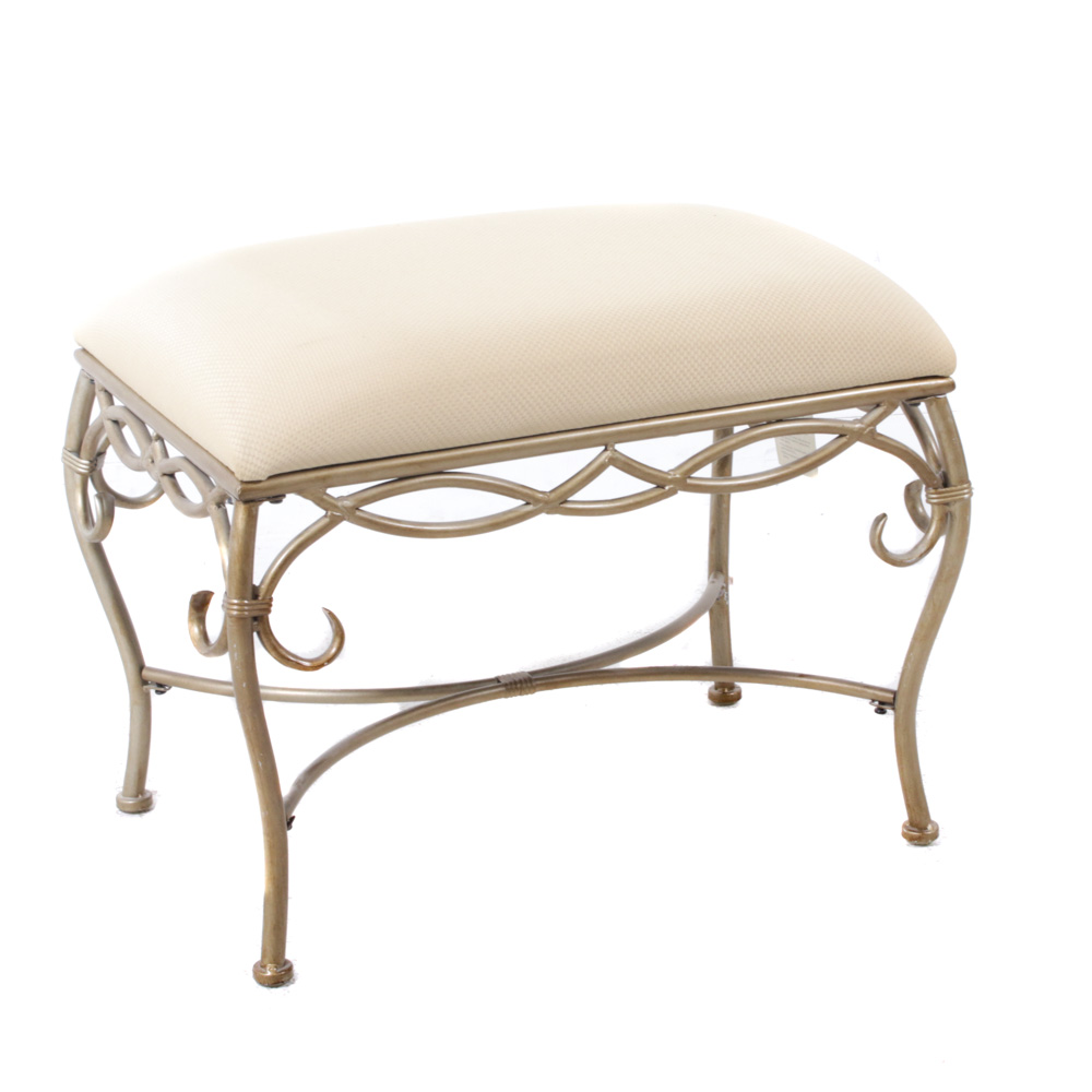 Scrolled Metal Vanity Bench With Upholstered Seat