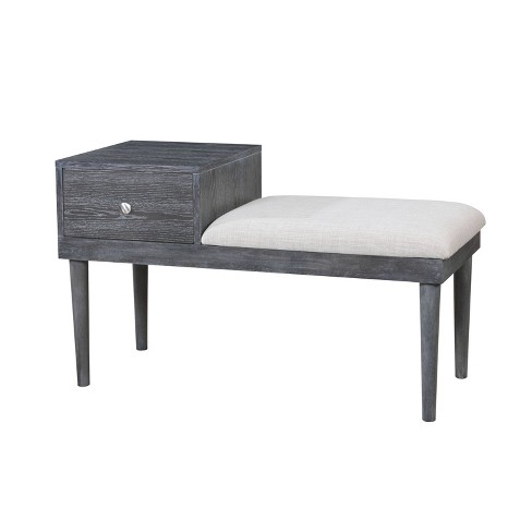 Mid Century Modern Style Storage Bench Chair W Drawer Hall Mudroom