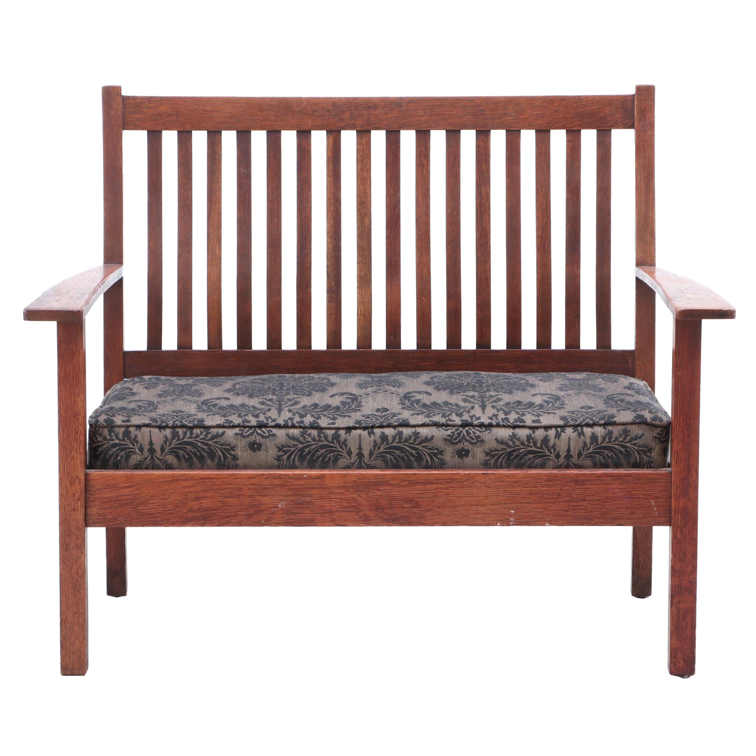 Quaint By Stickley Antique Arts Crafts Mission Oak Antique Bench Or Settee