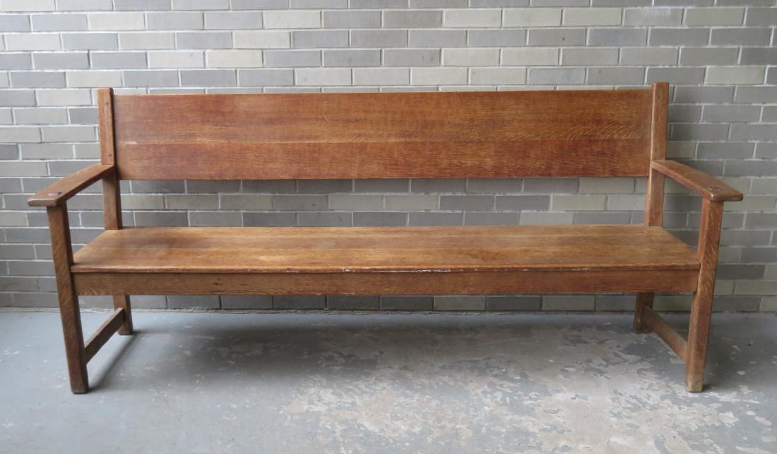 Mission Oak Bench Original To The Nodaway Masonic Lodge Clarinda Ia Mortise Tenon Slatted Arms