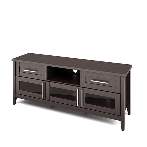 This low profile bench is featured in the dark wenge finish accented with imitation nickel handles includes two drawers and an open center shelf. Shop for media units at swoon. From classic white and black ones to solid oak units and modern versions with glass surfaces with or without tv brackets find a tv stand that meets your needs fits well with your other living room furniture and reflects your personal taste.