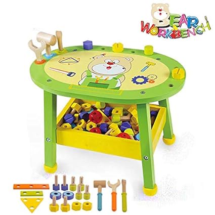 Beebeerun Kids Workbench Wooden Bear Master Workshop Award Winning Kid S Wooden Tool Bench Toy Pretend Play Creative Building Set Solid Wood Toy