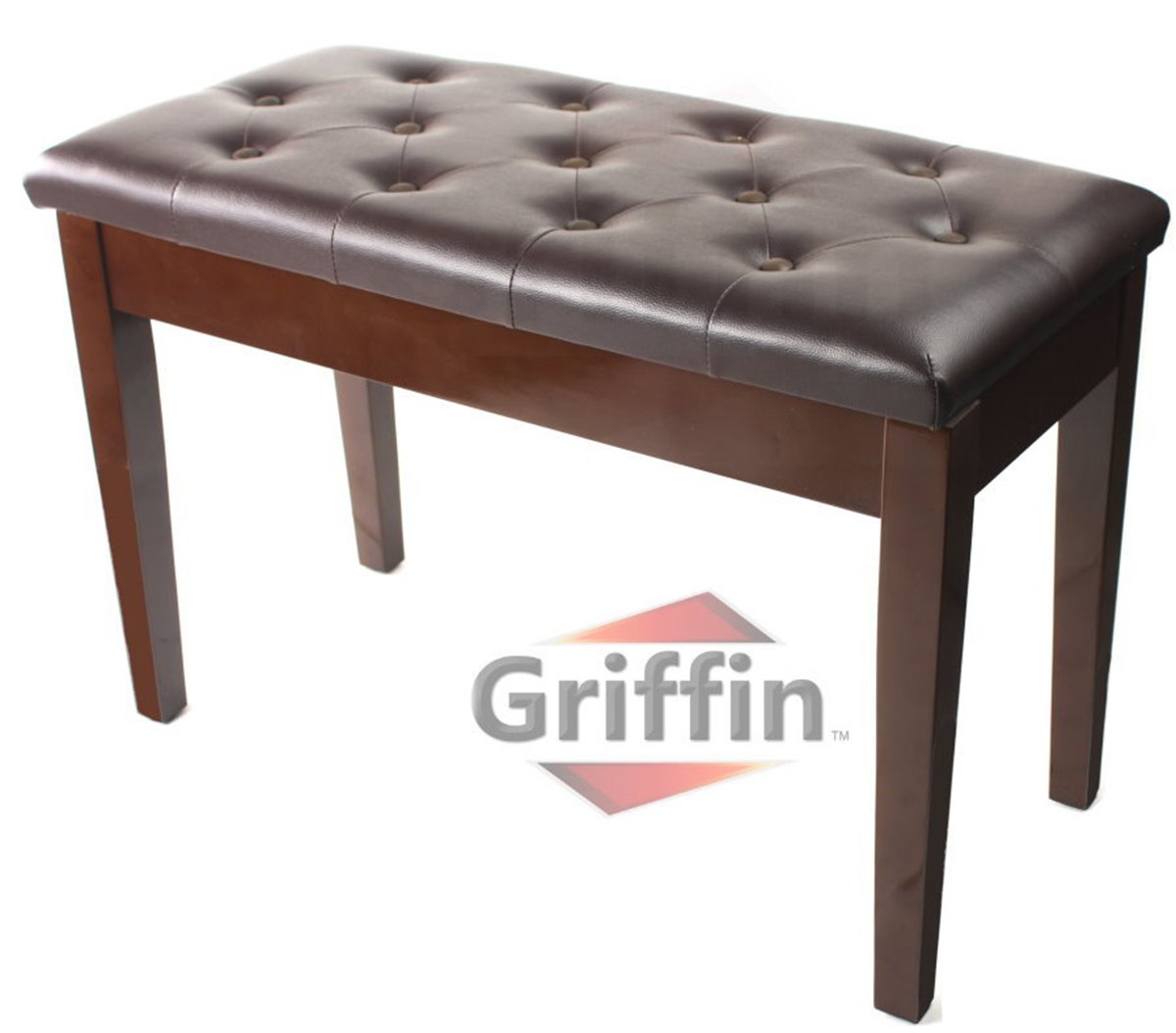 Griffin Double Brown Leather Piano Bench Vintage Design Heavy Duty Ergonomic Keyboard Stool Comfortable Double Duet Seat Convenient Hidden