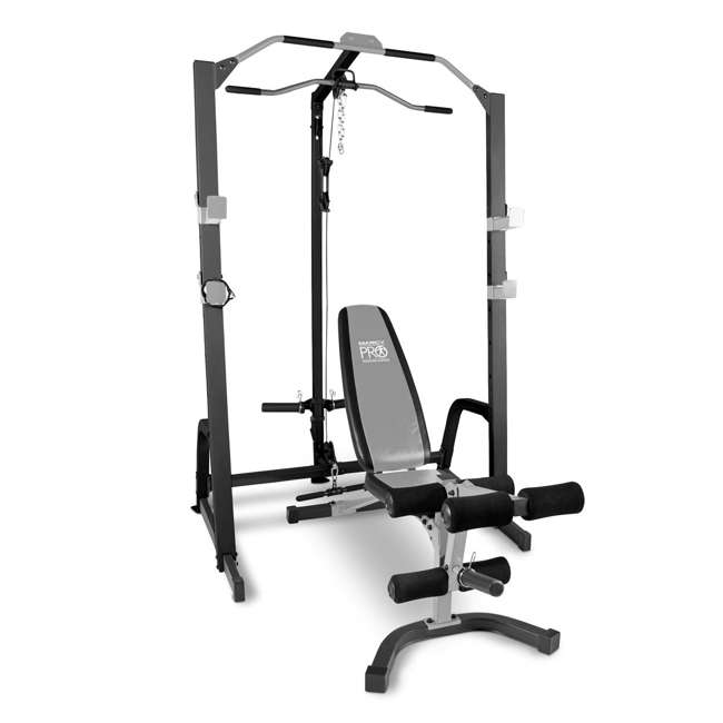 All versions of the marcy home gym come with a vertical support that suspends a high pulley overhead the lat tower. Steel frame cables and plates. Top selling bench presses weight benches.