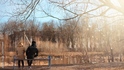 A Pair Of Young People Met In The Park Lovers Are Sitting