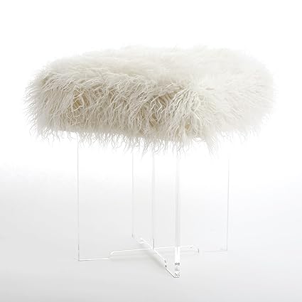Best Home Fashion Mongolian Lamb Faux Fur Acrylic Cross Leg Stool 16 X 16 X 17 5 White