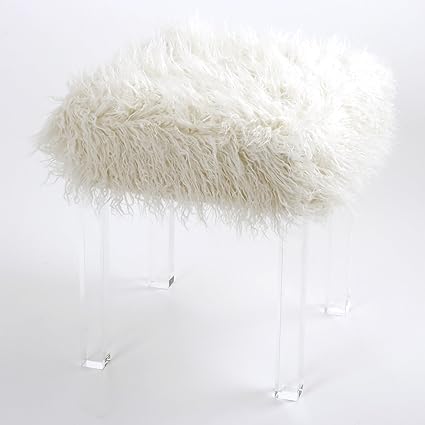 Tibetan Mongolian Lamb White Fur Acrylic Bench