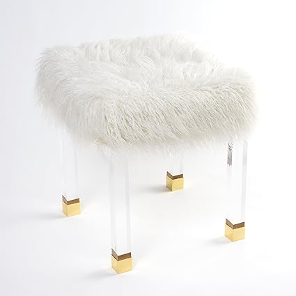 Mongolian Lamb Faux Fur Clear Acrylic Square Leg Stool