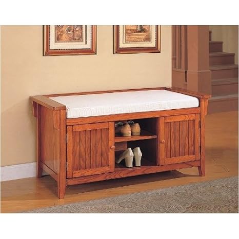 Shoe Storage Bench With Cushion Upholstered Mission Style