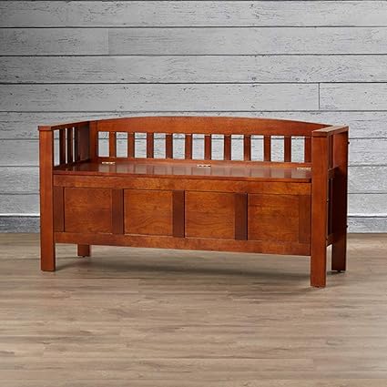 Details About Cape Anne Traditional Split Seat Mission Style Wooden Storage Bench Walnut Brown