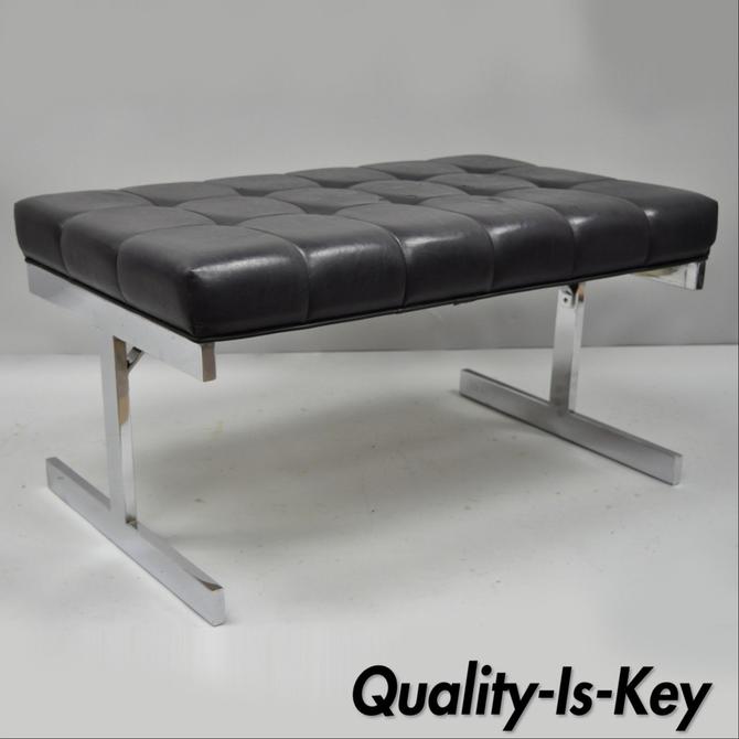Tri Mark Design Milo Baughman Style Chrome Black Vinyl Tufted Bench